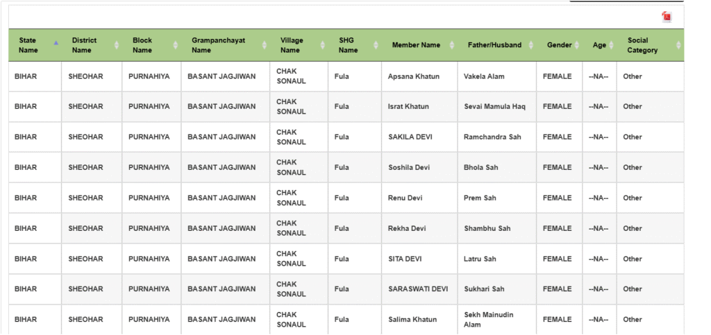 जैसे ही आप इन जानकारी को Select करेंगे आपके सामने आपके गाँव की सभी Jeevika Member का लिस्ट दिखाई पड़ जायेगा , अगर लिस्ट बड़ा हैं तो आप Search के आप्शन पर क्लिक करके अपना नाम भी Search कर सकते हैं |
