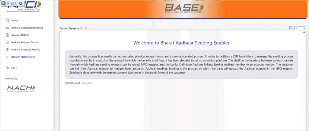 #1. base.npci.org.in/base/homepage वेबसाइट पर जाए