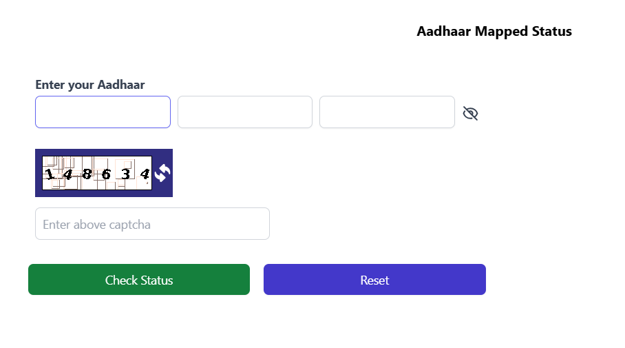 अपना आधार कार्ड नंबर लिखने के बाद आपको Captcha लिख देना हैं , उसके बाद आपको Check Status के आप्शन पर क्लिक कर देना हैं |