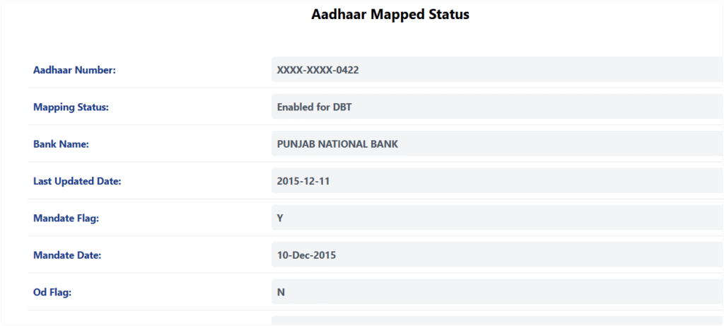 जैसे की यहाँ पर आप देख सकते हैं , की मेरा Punjab Nation Bank में DBT चालु हैं |