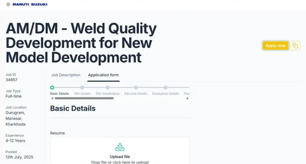 जब आप ऊपर दिए गए लिंक पर क्लिक करेंगे , तो आप सीधे Maruti Suzuki के करियर वेबसाइट पर चले जायेंगे ,